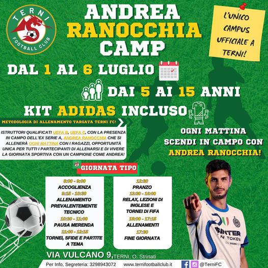 A Terni il primo Andrea Ranocchia camp dal 1 al 6 luglio