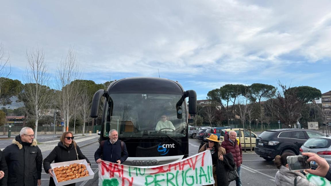 Bandecchi riempie il pullman della protesta con i suoi, ma lui va a Perugia in Mercedes