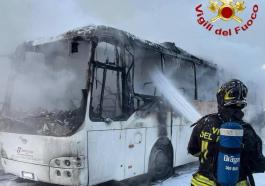 Le fiamme hanno completamente distrutto il pullman di linea