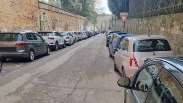 La Perugia sbagliata/Chi ha detto che il marciapiede dei Giardini del Frontone è inutile? Guardate: è un lungo parcheggio