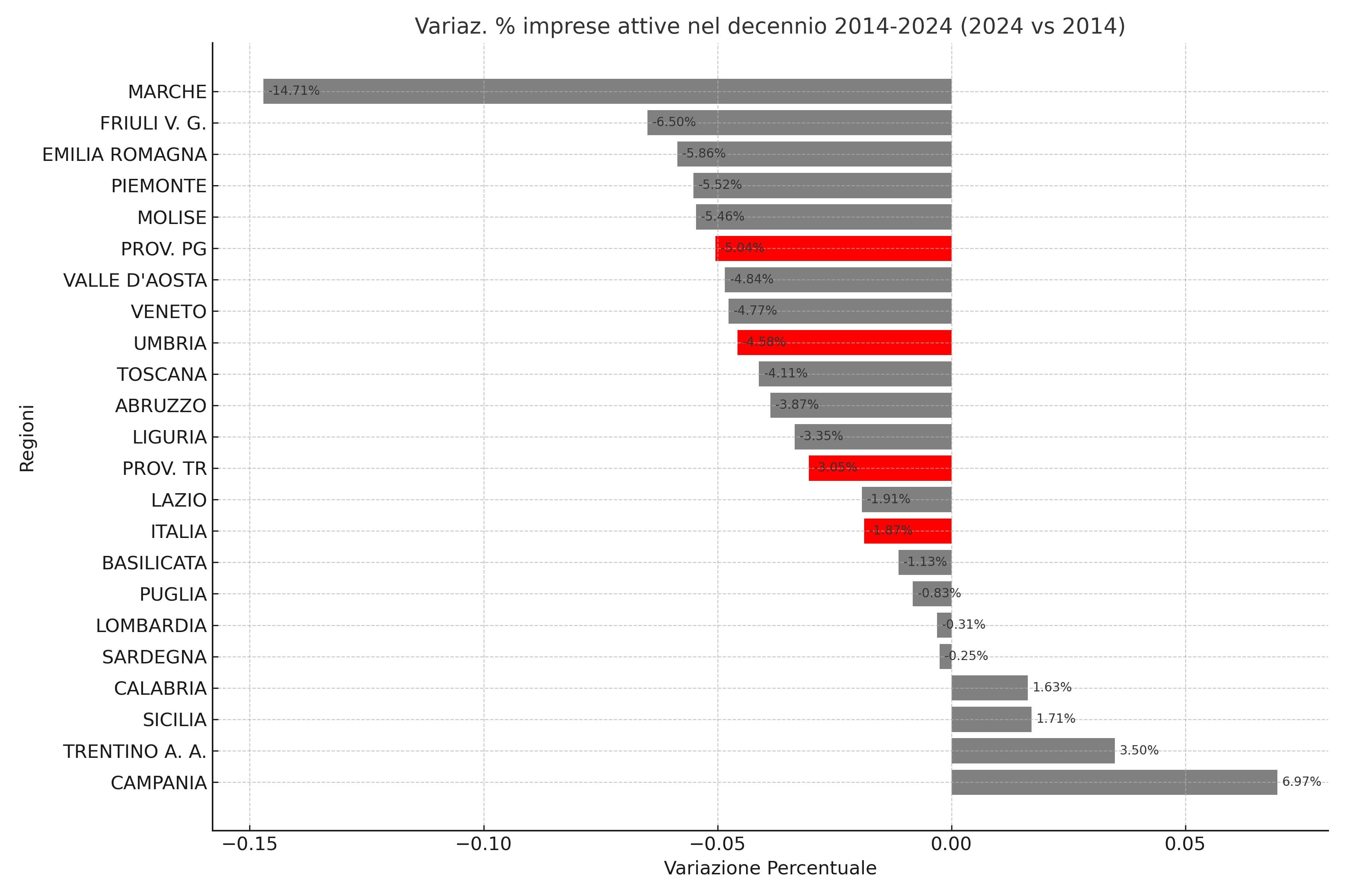 L’economia in Umbria rimette la quinta: ecco i settori che fanno crescere la regione
