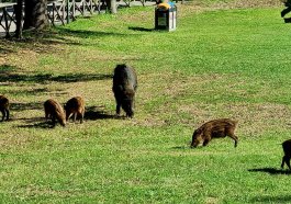 I turisti del ponte del primo maggio avvistano una famiglia di animali selvatici a spasso per i Campacci