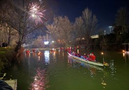 in -> prima pagina, Attualità Babbo Natale in Umbria arriva in canoa lungo il Tevere Circa trenta speciali Santa Claus hanno portato gioia e allegria a Città di Castello