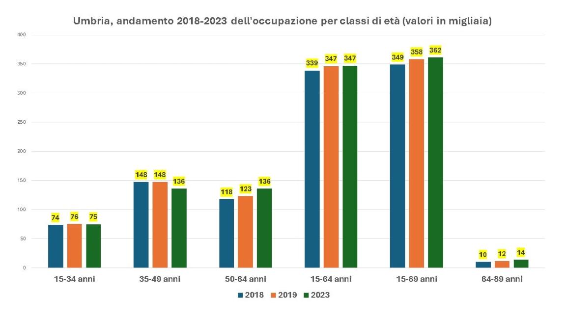 Lavoro in Umbria: giovani under 35 in calo, cresce il numero degli over 50