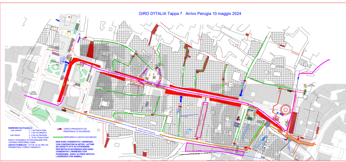Giro d’Italia a Perugia: divieti, limitazioni e ingresso in corso Vannucci