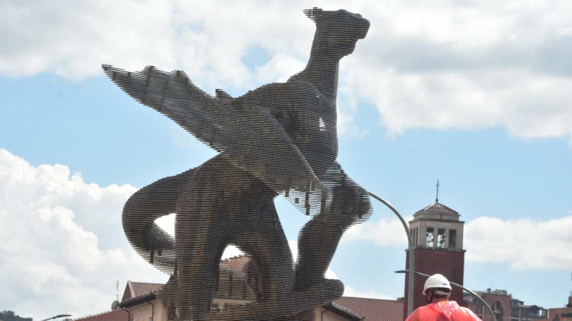 in Attualità Il drago dell’associazione Thyrus dispiega le ali al PalaSì, omaggiando la città dell’amore Lo scultore Marco Diamanti intento a realizzare l’opera simbolo di Terni modellando il cioccolato, spazio anche a laboratori creativi, show cooking