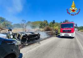 Frontale tra un camper e un furgone innesca un incendio in località Biagio