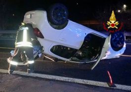 in Cronaca Incidente stradale sulla E45: auto sbanda e si ribalta Sul posto i vigili del fuoco di Città di Castello