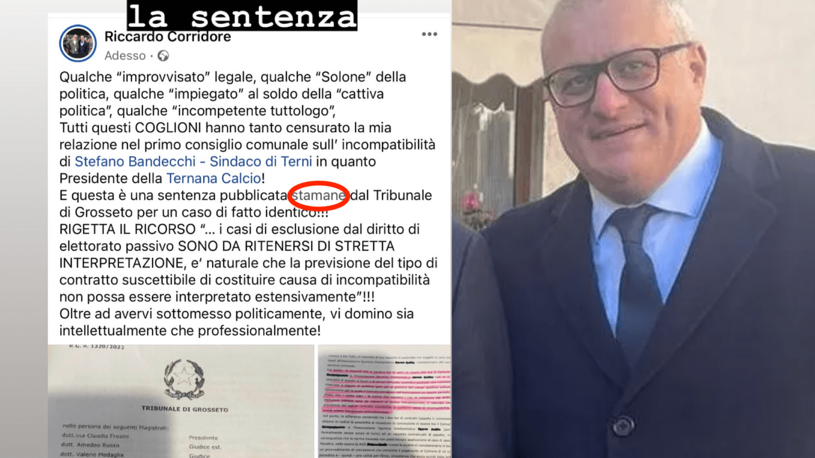 Alternativa popolare “toppa” la data di un’ordinanza, che è già in appello, ma forse vuol dirci che Bandecchi si darà la gestione del palasport?