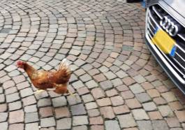 in Attualità Alla vigilia della disfida dei trattori, appare una gallina a palazzo Spada Nel pomeriggio di venerdì il pennuto a spasso sotto i portici e tra le auto. LE FOTO. IL VIDEO