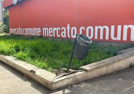 in -> primo piano, Attualità Mercato Comune: degrado in vendita Erba alta, cestini divelti, sporcizia, sosta selvaggia: l’ area a ridosso del “Cubo” arancione lascia molto a desiderare. LE FOTO