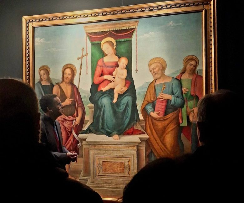 Quarantacinque capolavori di proprietà della Fondazione Carit in mostra per Natale e San Valentino. In omaggio all’ Umbria il percorso espositivo inizia con la pala raffigurante la “Madonna in trono col Bambino con san Sebastiano e san Giovanni Battista, san Rocco e san Pietro” della bottega del Perugino