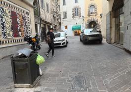 Viaggio nel centro che muore, tra auto in sosta selvaggia, saracinesche abbassate, buche, buio e sporcizia. LE FOTO