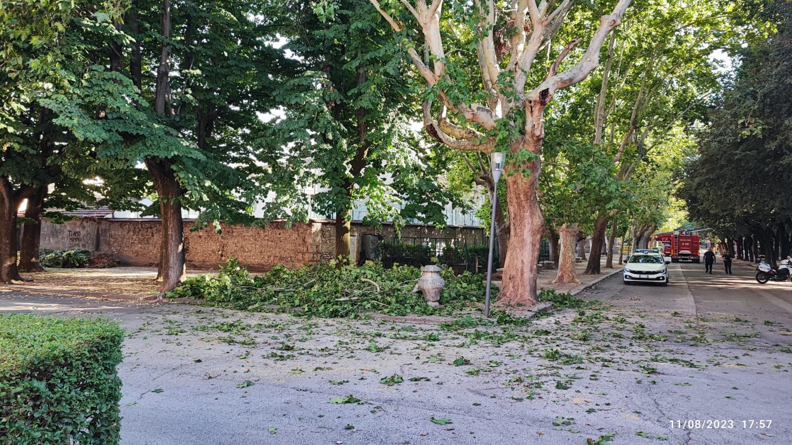 in -> primo piano, Attualità Crolla il ramo di un platano alla Passeggiata, area messa in sicurezza. Al via le verifiche ma il parco resta fruibile
