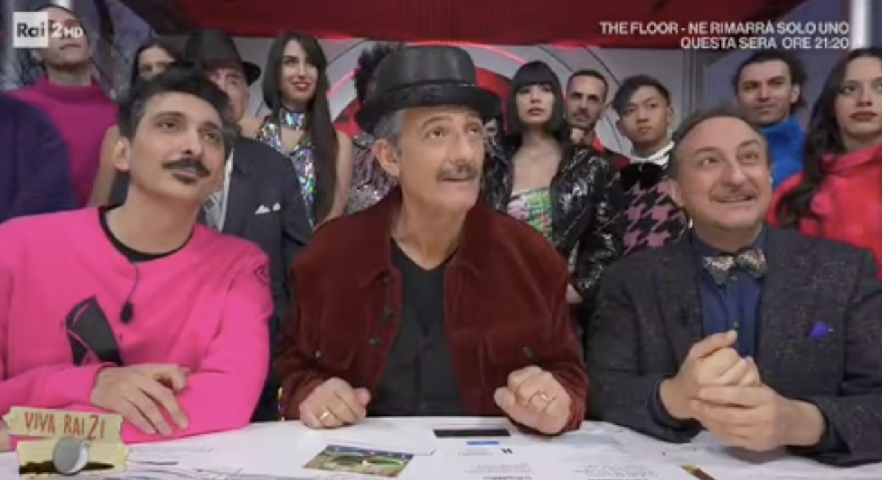 A Roma per il perugino Mauro Casciari il dolce del santo: striscione e canditi nello studio con Fiorello e Biggio