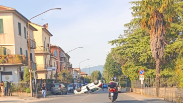 Si ribalta con l’auto in via Martin Luther King, traffico congestionato