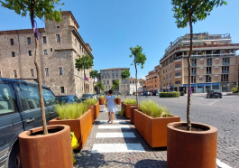 Palazzo Spada fa rimuovere il porfido rosso interrompendo il disegno dell’architetto che ha progettato anche l’asse di corso del Popolo. LE FOTO. IL VIDEO