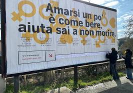 in Attualità Sul Ponte Garibaldi un poster di Utilità Manifesta/ Design for social per celebrare San Valentino Un gesto d’amore e un messaggio di pace e solidarietà