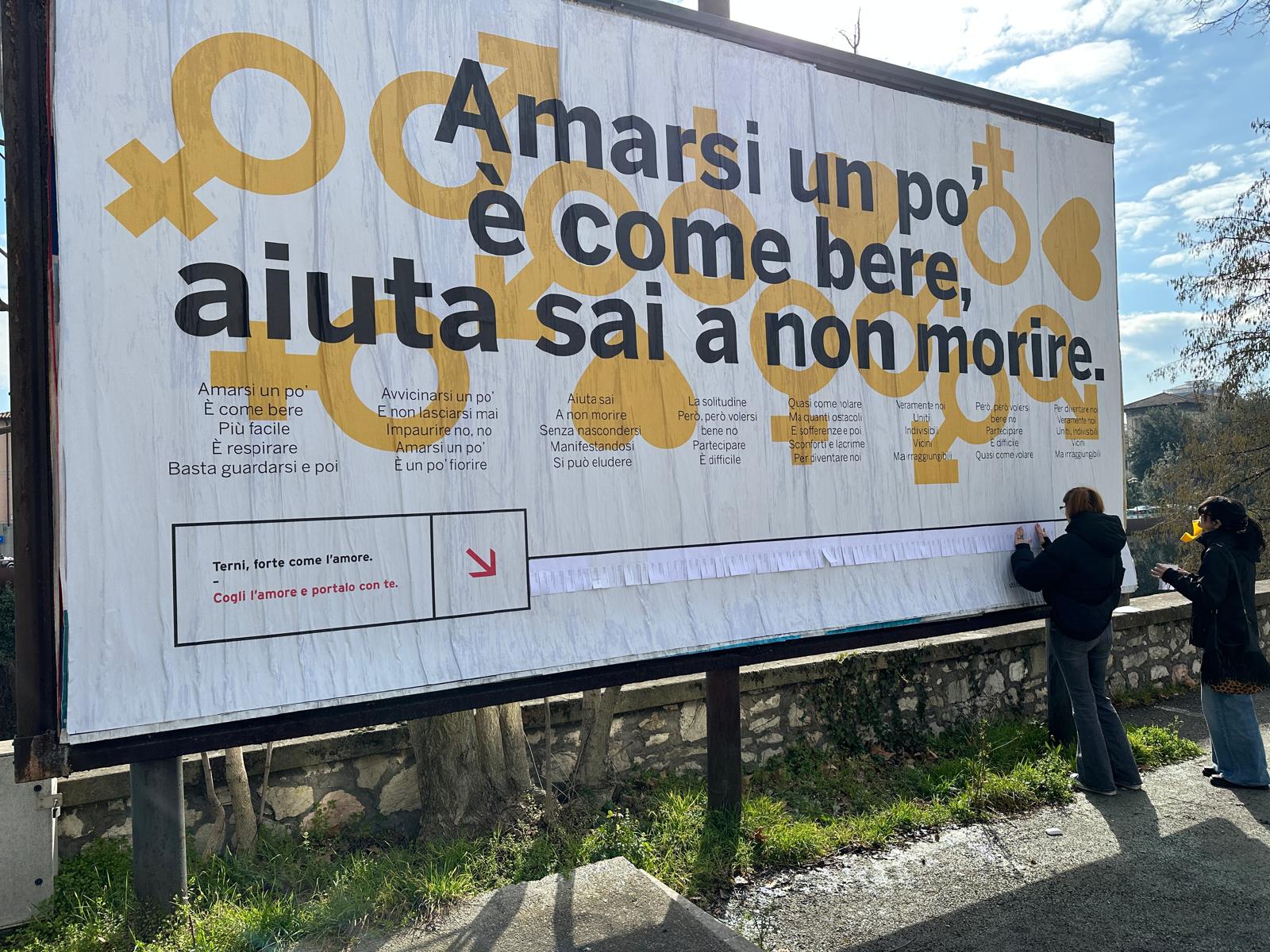 in Attualità Sul Ponte Garibaldi un poster di Utilità Manifesta/ Design for social per celebrare San Valentino