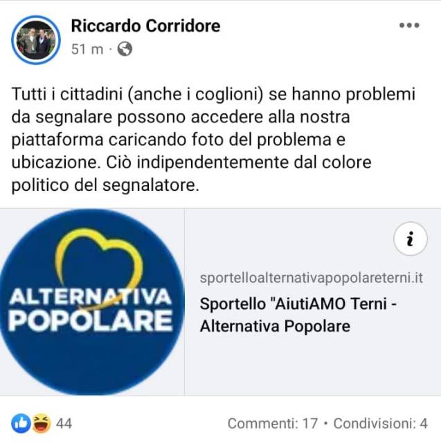 Il vicesindaco egualitario e inclusivo: tutti i cittadini possono lamentarsi. «Anche i cogl*oni»
