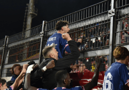 Primo ko della gestione Formisano: decide il match la rete di Sandri. I biancorossi giocano più di metà gara in dieci a causa dell’espulsione per doppio giallo di Kouan | LE FOTO