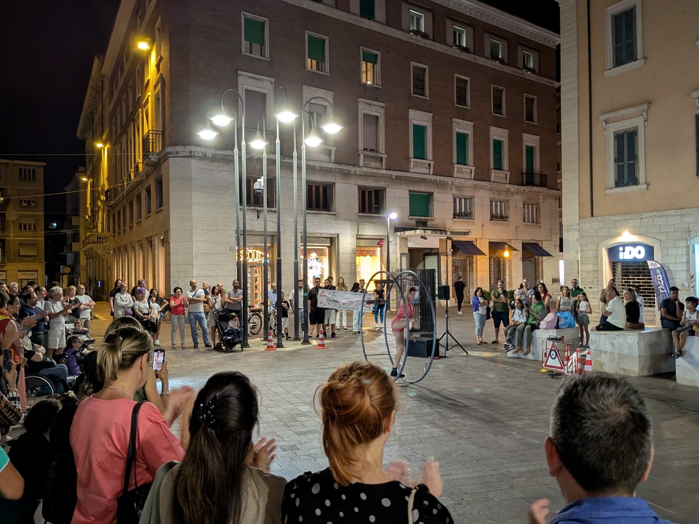in -> primo piano, Attualità Quattro gatti per lo spettacolo dell’artista di strada col cane L’unico evento di Ferragosto in città racimola pochi spettatori