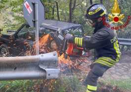 in Cronaca Finisce fuori strada lungo il sentiero Francescano che porta a Stroncone E’ stato necessario tagliare un pezzo di guardrail per recuperare l’auto
