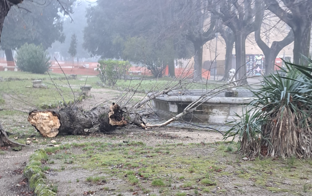 Tragedia sfiorata alla Passeggiata: cade un tronco d’albero secolare all’interno del parco mentre c’è il mercato