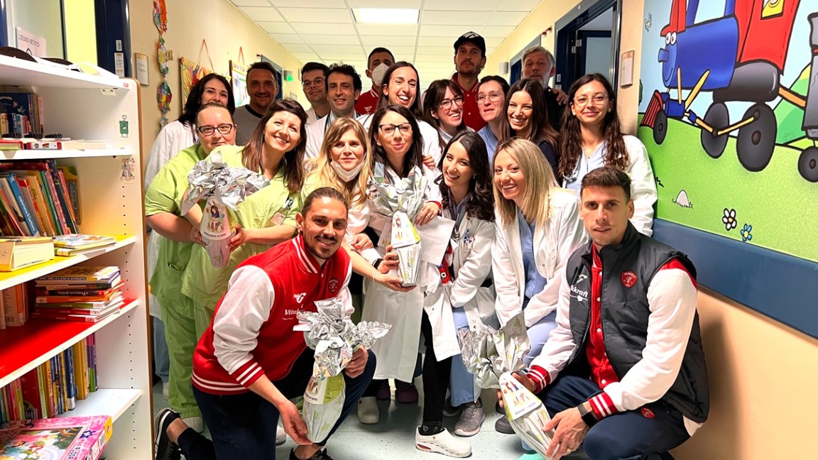 Il Perugia calcio nelle uova di Pasqua dei bimbi dell’ospedale Santa Maria della Misericordia