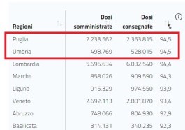 Poche dosi in Umbria (13esima regione in Italia) ma gap recuperati: vaccinati tutti i 60enni prenotati. Con un allarme: un 25% non ha aderito