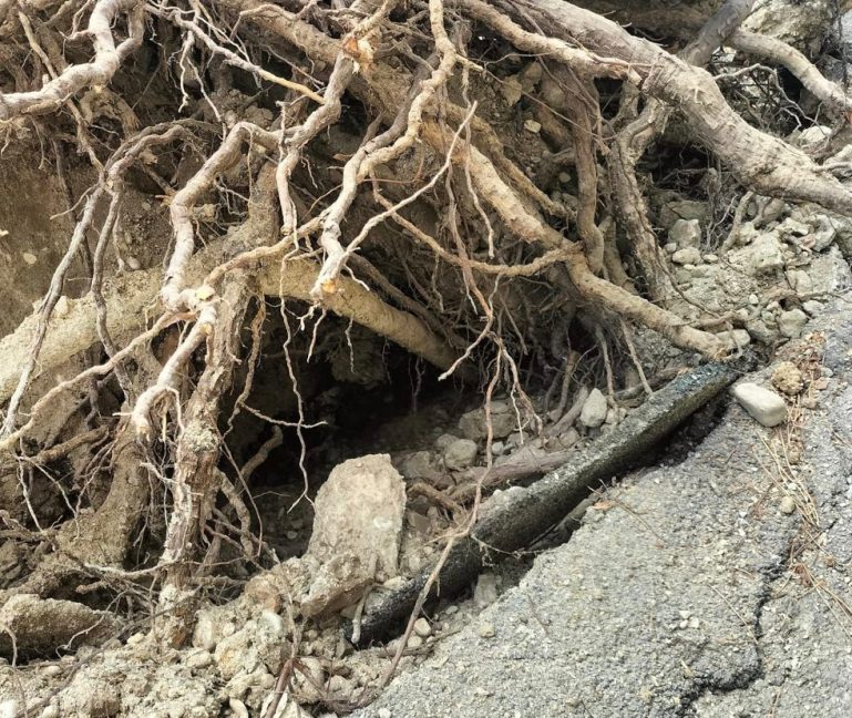 Crolla un pino durante il taglio e si solleva l’asfalto