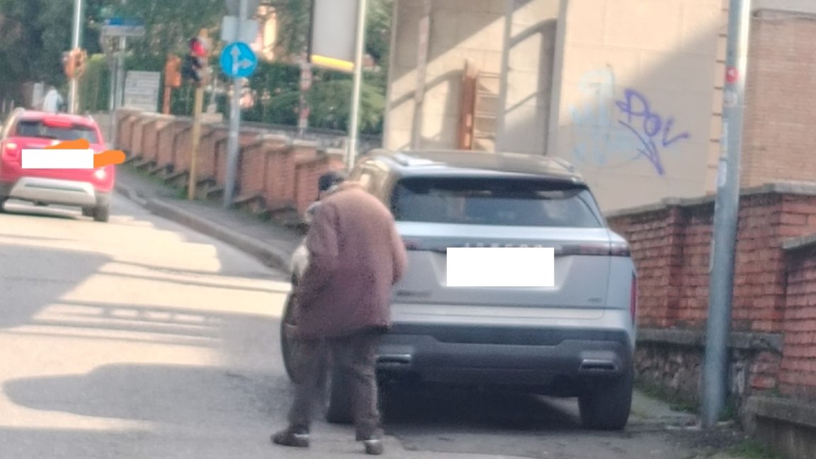 Marciamacchine in via Pellas (tutte le zone sono buone per parcheggiare dove capita)