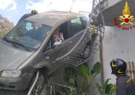 Manovra venuta male: sfonda il cancello di un’abitazione a Poscargano e rimane incastrata in un terrazzo